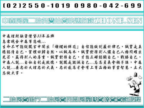 中森房屋二胎免費估貸快速放款ZHONE-SEN(02)2550-1019 0980-042-699洪經理