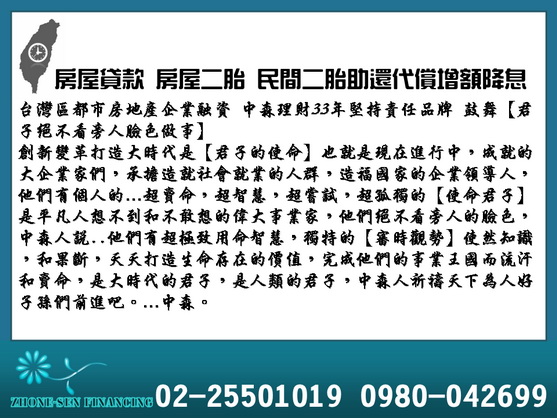 台灣區都市房地產企業融資中森理財33年堅持責任品牌 鼓舞【君子絕不看旁人臉色做事】